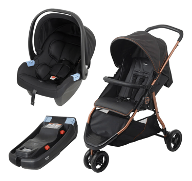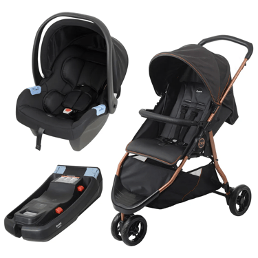 Carrinho + Bebê Conforto Materna + Base - Cinza-escuro - Cobre Burigotto